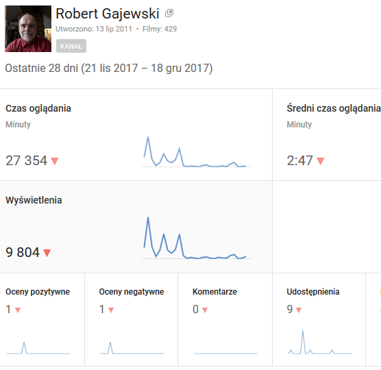 Nie odczuwam nieodpartej potrzeby masowania słupków popularności mojego serwisu edukacyjnego. Po prostu mnie to nie bawi, nie bierze. Ale robiąc playlistę kolejnego zestawu dotyczącego algorytmiki i programowania lekko zdębiałem. Wyniki z ostatnich 28 dni są fantastyczne! 9 804 wyświetlenia, łączny czas oglądania 27 354 minuty. Zakładając, że każdy z 230 Studentów zajrzał do materiałów daje to… 120 minut na Studenta! Albo inaczej – 43 wyświetlenia na osobę. Jakoś to się nie przełożyło na fantastyczne wyniki sprawdzianu z arkusza, bo… Teoria wielkiego skoku nie działa w sytuacjach, gdy nauczenie się czegoś wymaga zrozumienia. Tego procesu nie da się oszukać i przyspieszyć. Jest z tym trochę jak z dojrzewaniem wina lub sera. Martwi mnie zerowe zainteresowanie materiałami dotyczącymi Prime. Mam pełną świadomość, że między 11 a 31 stycznia będą kolejne rekordy oglądalności…